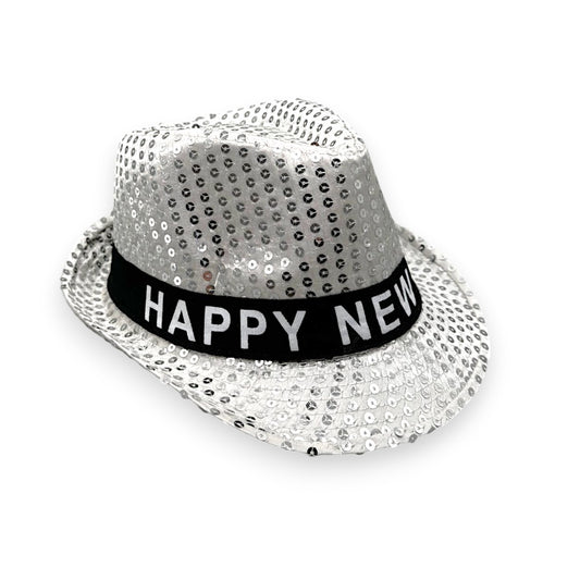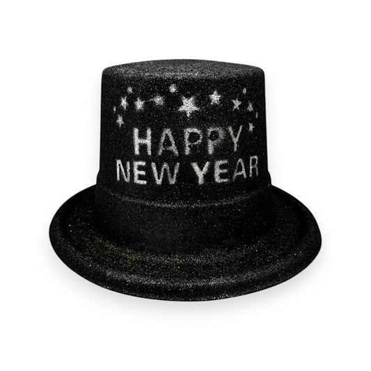 HAPPY NEW YEAR HAT BLACK PLASTIC W/GLITTER